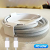 Durable white nylon-braided USB-C to USB-C cable for iPhone 15. Available in 1m and 2m lengths, supports fast charging (up to 20W) and high-speed data transfer (USB 3.1 or higher).